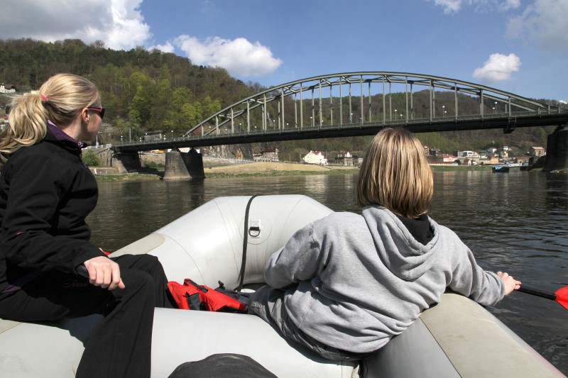 Další účastníci je mohou doprovodit na člunech nebo lodích. Cestou se zastaví přímo v místě, kde by měl vyrůst plánovaný jez: ukáží si zde, jak vysoko nad jejich hlavami by v daném místě byla hladina řeky. Pak doplují přes státní hranice a Bad Schandau až do německé Pirny, kde přespí, aby se druhý den vydali na další část cesty až do Drážďan. Akce nazvaná „Labe nás spojuje“ se koná ve spolupráci s německou iniciativou Flussschwimmen.
