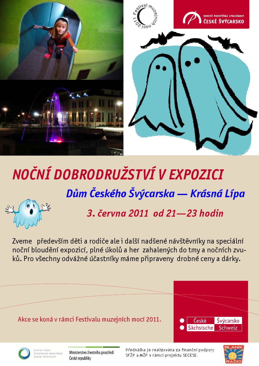 České Švýcarsko o.p.s. zve především děti a rodiče, ale i další nadšené návštěvníky, na speciální noční bloudění expozicí, plné úkolů a her zahalených do tmy a nočních zvuků. Pro všechny odvážné účastníky budou připraveny drobné ceny a dárky.