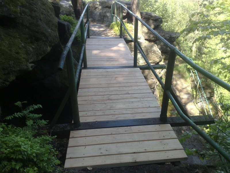 Můstek na Kvádrbergu na cestě směrem z vyhlídky ke střelnici musela příspěvková organizace města Lesní úřad Děčín po roce znovu opravovat.