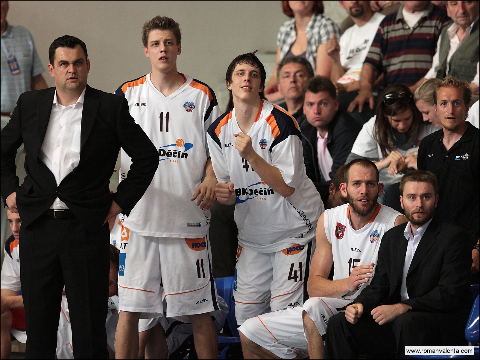 Něco kolem padesáti děčínských fanoušků, kteří se za svým celkem vydali ho v těžkém boji podpořit, však i nadále své miláčky hnali vpřed, ač věděli, že Nymburk je již jednou nohou ve finále. V závěrečné čtvrtině už i domácí viditelně ubrali z vysokých obrátek a nechali náš celek nepříznivý stav zkorigovat – v minutě 33. se prosadil Soukup (70:45) a o tři minuty později ho napodobil jeho podkošový kolega a nový MVP MNBL Pavel Houška a upravoval na 72:57. Minutu a třináct vteřin před závěrečnou sirénou snižoval benjamínek Jiříček až na rozdíl devíti bodů – 73:64, jenže bohužel platilo rčení: pozdě bycha honiti. Nymburští si nakonec závěr zkušeně pohlídali – přesto tečku za zápasem a zároveň celou sérií udělal úspěšným trestným hodem děčínský pivotman „Bobo“ Landa a stanovil tak závěrečný stav na 78:65.