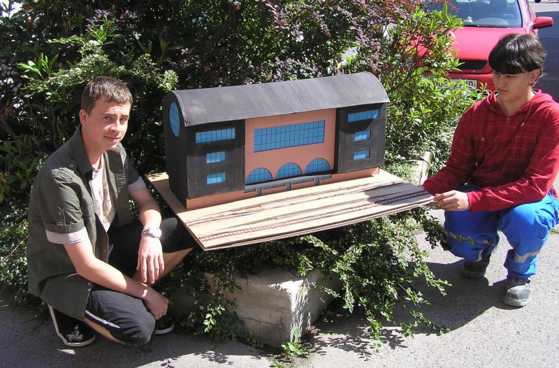 Model v podobě železničního vagónu vyrobili z ekologické vlnité lepenky a svůj projekt přihlásili do celostátní soutěže. Inspirací jim byla podobná budova v japonském městě Mooka. S tvůrci děčínského nádraží Tomášem Andrejkovičem a Jaroslavem Kaňkou si povídal redaktor Josef Suk.