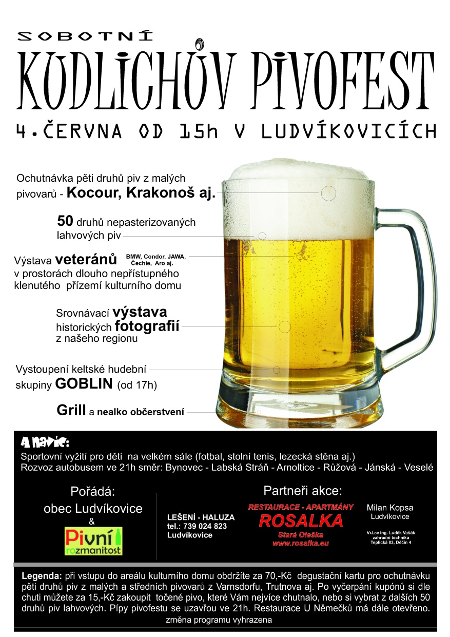 Rubriky Zprávy Kudlichův pivofest Autor příspěvku Autor: aleso Datum příspěvku 03/06/2011 – Ochutnávka pěti druhů piv z malých pivovarů – 50 druhů nepasterizovaných lahvových piv – Výstava veteránů – Srovnávací výstava historických fotografií – Vystoupení keltské hudební skupiny GOBLIN 4. června od 15h v Ludvíkovicích Sdílejte:Share Share on Facebook (Opens in new window) Facebook ← Útulek zhodnotil svou činnost → Fundraising – co dělat, když se peněz nedostává