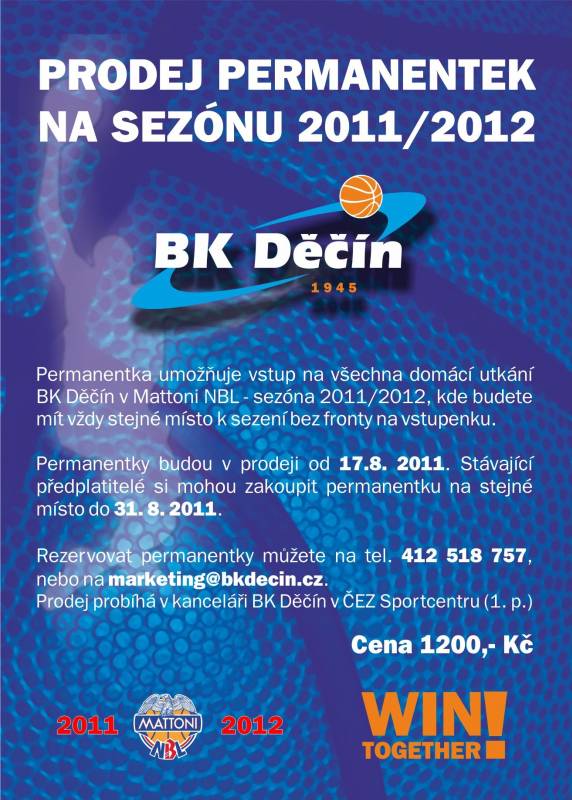 Prodej probíhá v kanceláři BK Děčín v ČEZ Sportcentru (1. patro)