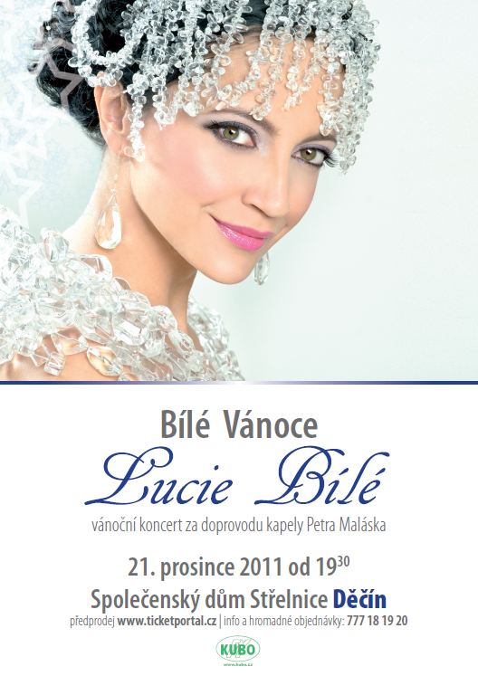 Zpěvačka Lucie Bílá před Vánoci opět míří na tour do dvanácti měst po celé republice. Mezi vybrané města se dostalo i město Děčín, kam přijede prezentovat její mimořádně úspěšné loňské album Bílé Vánoce. To je už třikrát platinové – prodalo se ho přes 90 tisíc kusů, přitom v současnosti se zlatá deska dává za 5.000 prodaných desek.