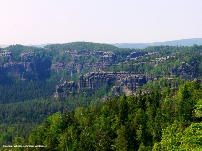 …Grosser Winterberg (552 m.n.m), která je druhou nejvyšší horou Saského Švýcarska. Náročný výstup s převýšením 440 metrů na vzdálenosti 2,5 kilometrů zahájíme na parkovišti u řeky Labe v obci Schmilka. Projdeme obcí kolem vodního mlýnu a pokračujeme nejkratší, ale také nejstrmější zeleně značenou stezkou „Bergsteig“ přímo k vrcholu. Kamenné stupně ve strmém svahu plném bříz, smrků a mladé bučiny záhy vystřídají dřevěné schůdky v přítmí mohutných prastarých buků, které tak ostře kontrastují s okolní pískovcovou krajinou. Poměrně namáhavý výstup nám zabere hodinu času. V horních partiích doporučuji odbočit vpravo na značenou vyhlídku Kipphorn. Výhledy odtud do Labského údolí jsou ojedinělé. Na horizontu můžete hádat Bukovou horu, Milešovku, Děčínský Sněžník, Krušné hory a všechny stolové hory Saského Švýcarska. Samotný vrchol čedičové hory Grosser Winterberg nabízí mnoho zajímavostí, které stojí za to prozkoumat. Rozhodně nesmíte vynechat teprve před třemi lety znovuotevřenou rozhlednu, která je součástí zdejšího hotelu a restaurace. Vstupné je 50 centů a výhledy zejména směrem na Saskou stranu a Šluknovský výběžek jsou moc pěkné. Ve zdejší restauraci si nenechte ujít něco málo ze saské kuchyně s českými knedlíky a česky hovořící obsluhou. Za důkladnou prohlídku stojí nedaleký kamenný domek s názvem „Eishaus“. Je zde zajímavá expozice Národního parku Saské Švýcarsko a popis k čemu domek, zajímavý svým technickým řešením, v překladu „chladírna“ původně sloužil. Sestupovou cestu zvolíme třeba tu s názvem „Wurzelweg“, zeleně značená (3,5 km), která ač není nejkratší, vede nádhernými pískovcovými partiemi zdejší krajiny. Vozíčkáři, kočárkáři a vy všichni ostatní, kteří máte rádi výzvy, zkuste s doprovodem širokou šotolinovou cestu a vydejte se na 6 kilometrů dlouhou výpravu plnou ostrých serpentin a pokořte tuto horu.