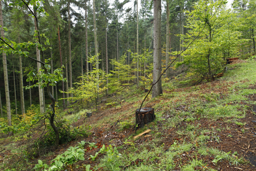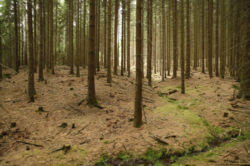 Smrková monokultura: V této lokalitě v podrostu zcela chybí budoucí generace lesa. Výběrovou těžbou a vysazením cílových dřevin – listnatých stromů či jedlí – se les změní ve smíšený.