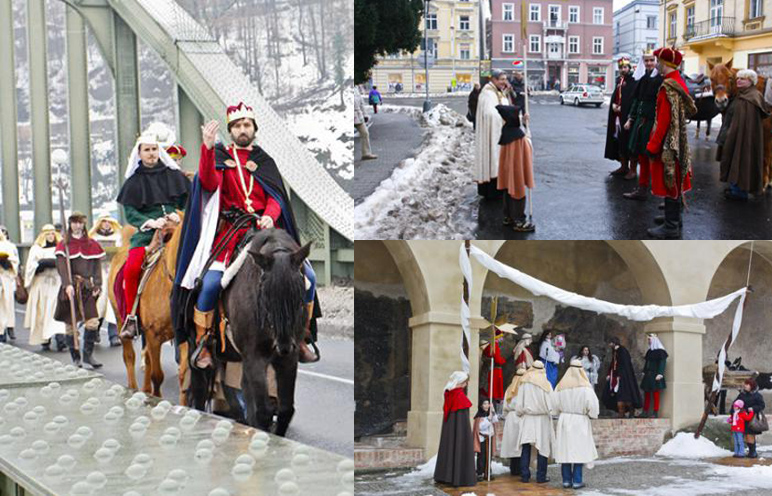 V dnešní uspěchané a komerční době pomalu zapomínáme, že Vánoce nekončí rozbalením dárků, ale až v neděli po svátku Tří králů. Proto také zámecký vánoční program pokračuje i počátkem ledna, kdy se symbolicky připojí ke konání tradiční Tříkrálové sbírky. Na její podporu se v sobotu 7. ledna 2012 uskuteční slavnostní jízda tří králů ulicemi města. Průvod vyjde v 10 hodin od kostela sv. Františka z Assisi na Husově náměstí a postupně přes nábřeží, Tyršův most na Tyršovu ulici doputuje na Masarykovo náměstí, kde se tři králové krátce setkají s králem Herodem. Od něho to bude za Jezulátkem již jen malý kousek. Malého Ježíška s Pannou Marií, sv. Josefem, s anděli, pastýři i oslíkem totiž naleznou u kostela Povýšení sv. Kříže, kde mu pod spojovací chodbou odevzdají své dary.