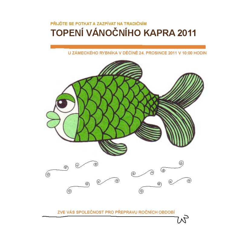 Rubriky Zprávy Topení vánočního kapra 2011 Autor příspěvku Autor: aleso Datum příspěvku 19/12/2011 Společnost pro přepravu ročních období zve na Topení vánočního kapra 2011 u zámeckého rybníka v děčíně 24. prosince 2011 v 10:00 hodin. ← Události MP Děčín → V prosinci bude omezen provoz na odboru sociálních věcí a zdravotnictví