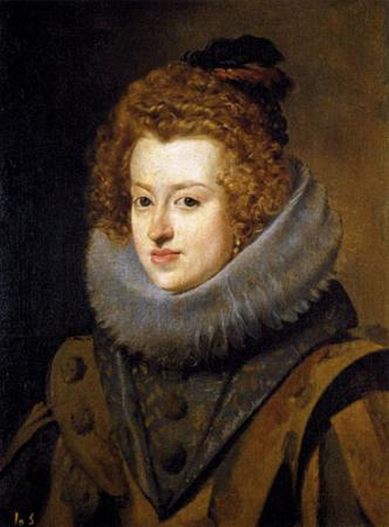Jedná se o portrét španělské infantky Marie Anny Habsburské (1606–1646), dcery krále Filipa III., která se roku 1631 stala manželkou budoucího císaře Ferdinanda III. Jeho vychovatelem a hofmistrem byl hrabě Kryštof Šimon Thun-Hohenstein, od roku 1628 majitel děčínského panství. Je velmi pravděpodobné, že právě on zakoupil portrét budoucí císařovny do jednoho ze svých sídel. Již od počátku si ho Thunové zřejmě velmi cenili, o čemž svědčí výrazně vyšší počet restaurátorských zásahů, než u ostatních obrazů z jejich sbírek. Na konci 19. století se hrabě František Thun vážně zabýval myšlenkou, zda nejde o dílo slavného malíře Diega Velázqueze. Roku 1898 ho proto zaslal k posouzení do Vídně. Znalec ovšem hraběte zpravil, že nejde přímo o mistrovo dílo, nýbrž o jeho velmi dobrou kopii. Počátkem 20. století portrét zdobil stěny pražského paláce rodiny Thunů v dnešní Nerudově ulici. Po jeho prodeji byl převezen do Děčína a následně do Jílového. Po 2. světové válce byl zkonfiskován a odvezen do Prahy, kde se téměř okamžitě dostal do sbírek Národní galerie.