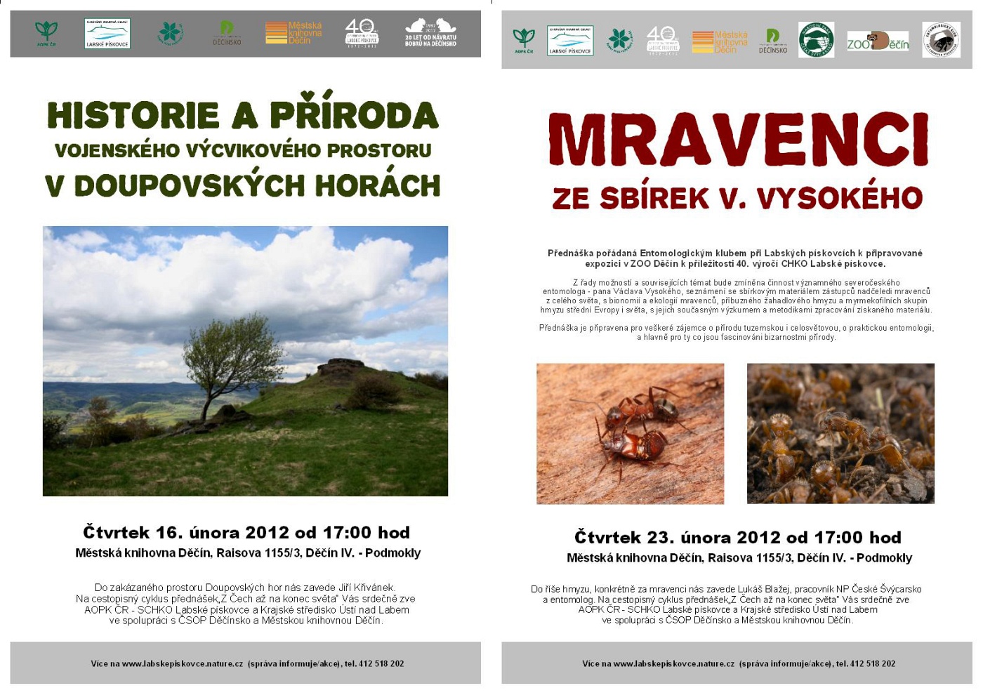 S Jiřím Křivánkem zavítáme 16. 2. do zakázaného vojenského prostoru v Doupovských horách. Jaká tajemství společně objevíme na území, kam lidská noha nemůže jen tak vkročit? Ve čtvrtek 23. 2. se vydáme s entomologem Lukášem Blažejem prozkoumat tajuplný svět mravenců. Přednášky se konají od 17:00 h na malém sále Městské knihovny Děčín.