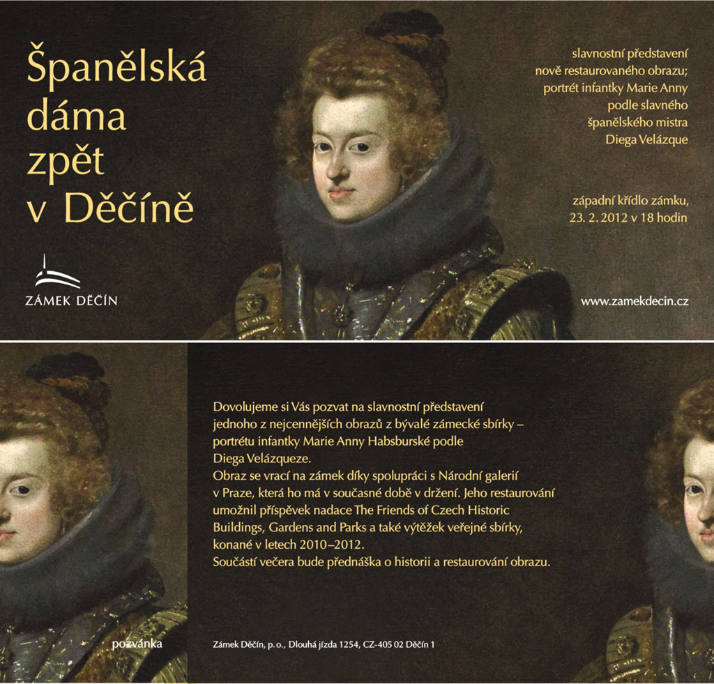 Zámek Děčín zve na slavnostní představení jednoho z nejcennějších obrazů z bývalé zámecké sbírky – portrétu infantky Marie Anny Habsburské podle mistra španělské barokní malby Diega Velázqueze.
