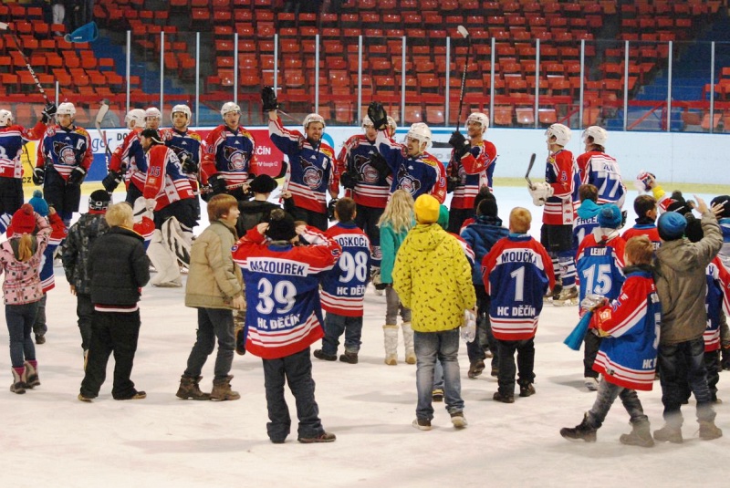 Sen nejen fanoušků Děčína se tak stal skutečností. DĚČÍN TOTIŽ POPRVÉ V HISTORII BUDE HRÁT FINÁLE PLAY OFF!!!! Nezbývá než pogratulovat celému hokejovému týmu za skvělé zážitky. V Děčíně se utvořila bezvadná parta, která doslova táhla za jeden provaz a která nám díky své obětavosti a bojovnosti dokázala připomenout slavné NAGANO.