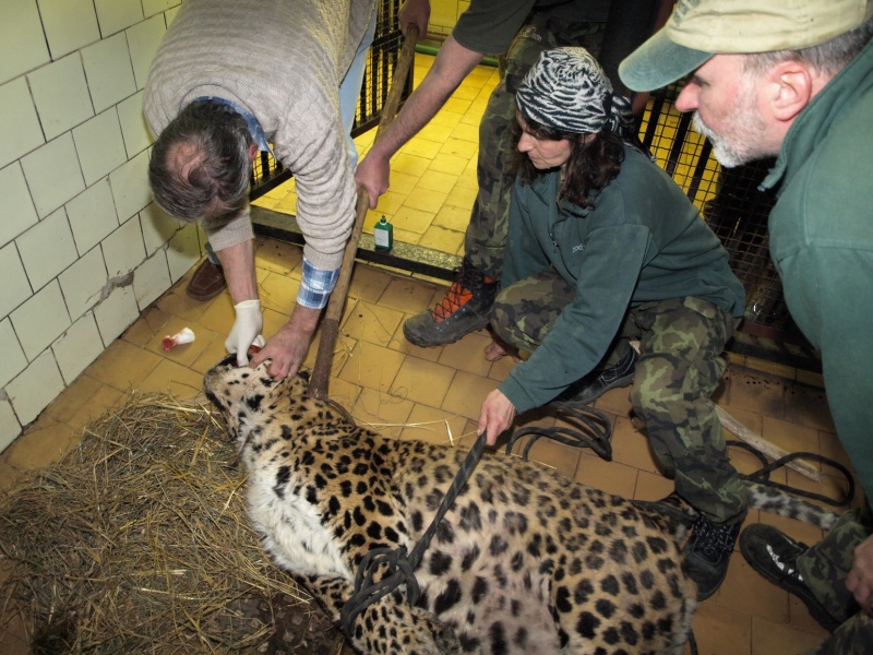 Bolavý zub nebo jiné poranění? Tak to dnes řešili pracovníci děčínské zoologické zahrady společně s veterinářem v expozici levharta mandžuského. Dvacetiletý Connie začal mít po víkendu problémy s přijímáním potravy, každé trhání masa mu viditelně způsobovalo bolest a na levé tváři se následně objevila ranka, kterou si tlapou rozškrábal do krve. „Levharta jsme uspali, a po prvotním vyšetření si oddechli. Bolavý zub to nebyl. Levhart si s největší pravděpodobností při krmení píchnul do dásně kost, rána se mu zanítila a v místě se vytvořil píštěl,“ popsal zoolog Roman Řehák. Veterinář ránu vyčistil a následně aplikoval antibiotika. Uspání levharta využili chovatelé k úpravě venkovní expozice.