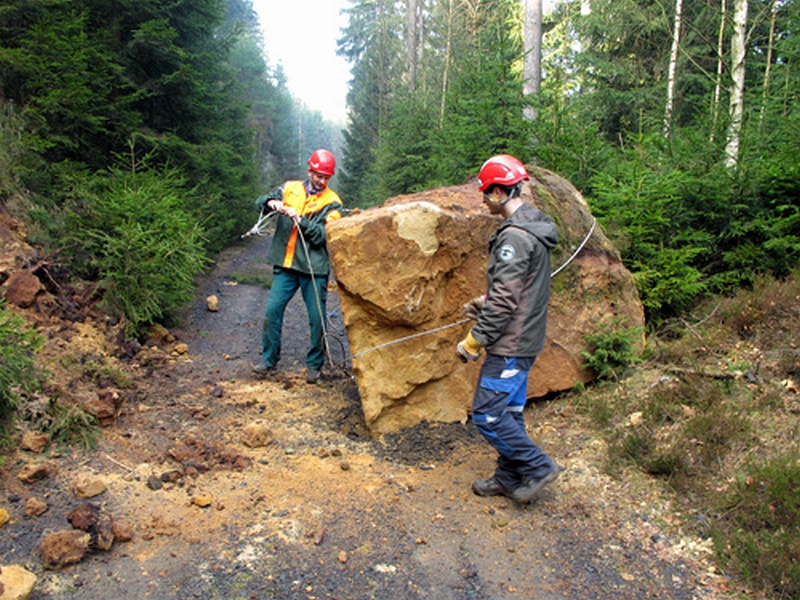 Krásná Lípa, 23. 3. 2012 – Pracovníci skalní čety národního parku České Švýcarsko provedli řízený shoz nestabilního skalního bloku nad stezkou pro pěší a cyklisty v oblasti Zadní Doubice. Blok bezprostředně ohrožoval cyklotrasu číslo 3031 v úseku mezi turistickým přechodem do Saského Švýcarska a Vlčí deskou. Nestabilitu bloku o hmotnosti zhruba 9 tun, který se nacházel zhruba ve výšce čtyř metrů nad cestou, odhalila skalní četa během rutinního odstraňování menších balvanů odpadlých ze skalního masívu. Pracovníci čety kámen shodili pomocí lanového napínáku.