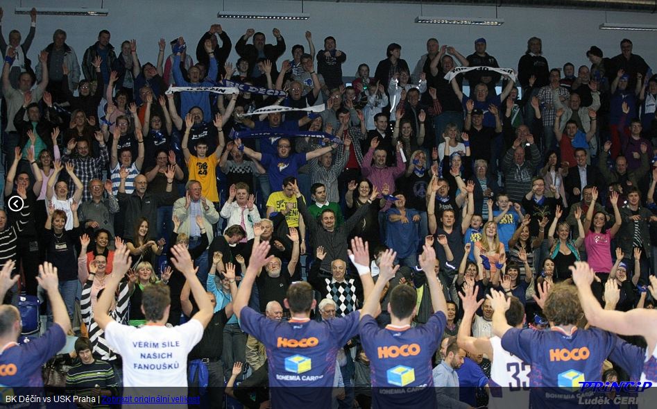 … a tlak děčínské ekipy pokračoval i nadále – po dvou koších Pavla Houšky a trojce Luboše Strii jsme záhy vedli 61:56. Po otočení skóre v náš prospěch se děčínská hra zklidnila a vedení mělo konstantní hodnotu – to jen podtrhuje stav ze začátku 36. minuty, kdy se prosadil za dva Ell Sanders (65:58). Pomyslný hřebíček do rakve soupeře zasadil zřejmě na konci 38. minuty Pavel Houška, který se trefil zpoza perimetru v poslední vteřině časového limitu! a zvyšoval na 70:62… Hráči si závěr utkání užívali společně se svými skvělými diváky, kteří jim „standing ovationem“ poděkovali za výhru 76:67 a postup do semifinále, kde vyzveme v ostrém souboji obhájce stříbra z Prostějova!
