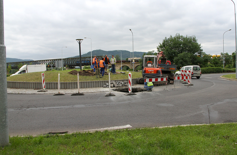 Ve dnech 25. 6. 2012 až 10. 8. 2012 bude omezen provoz na kruhovém objezdu „u mototechny“. Od 25. 6. 2012 do 8. 7. 2012 zde dojde k částečnému omezení provozu na vnitřním poloměru křižovatky (viz. situace č. 1) a od 9. 7. 2012 do 10. 8. 2012 bude uzavřena průjezdnost tohoto kruhového objezdu (viz. situace č. 2).“ Omezení jsou způsobena stavbou protipovodňových opatření. V návaznosti na stavbu protipovodňové zdi jsou prováděny také opatření na kanalizační síti, konkrétně na šachtě, která je umístěna v místě kruhového objezdu.