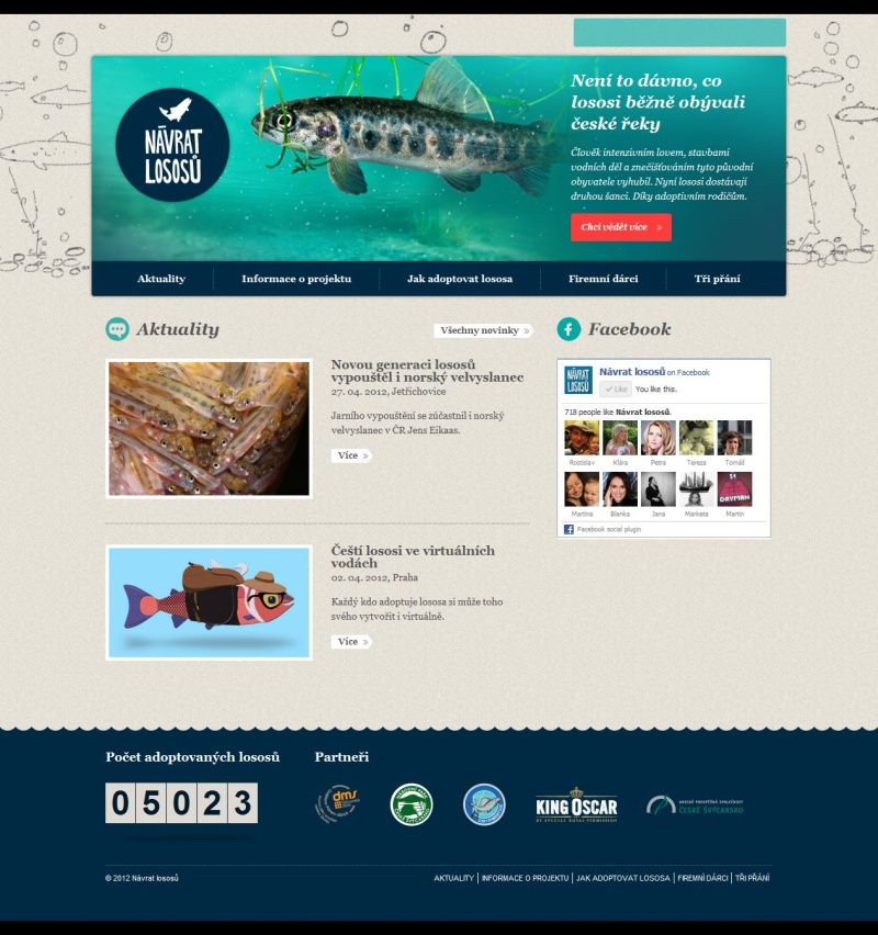 „Lososích rodičů a všech zájemců o projekt si velmi vážíme, proto se jim snažíme vyjít co nejvíce vstříc. Po hravé facebookové aplikaci, kde si každý může svého adoptovaného lososa obléct pomocí nabízených doplňků a vypustit jej na vlastní zeď, jsme se zaměřili na webové stránky. Nový design koresponduje s tím, kam se za poslední roky projekt Návrat lososů posunul, a uživatelé se v něm oproti tomu minulému mnohem lépe zorientují,“ říká Radek Hovorka z firmy King Oscar, hlavního partnera projektu.