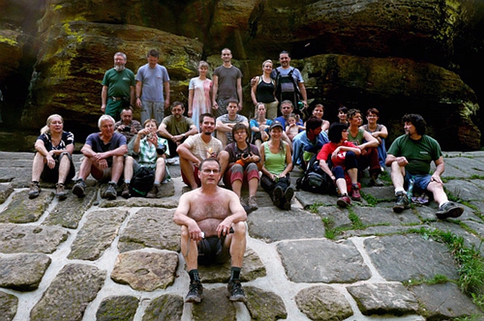 Přes vysoké teploty se brigádníkům nakonec podařilo zaplnit kontejner (z destruovaného hotelu bylo odvezeno 10 tun suti) a osadit okenní ostění v čelní stěně stáje, čímž se podařilo provázat další dva bloky zdiva a postoupit ve stabilizaci objektu ke druhému vchodu. Brigádníkům patří dík a uznání, jakož i trpělivému p. Knyovi z Jetřichovic, který s nimi vydržel převážet náklady od rána až do páté.