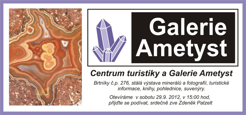 Zdeněk Patzelt srdečně zve na otevření nové galerie Ametyst v Brtníkách, které se koná v sobotu 29. září od 15:00 hodin.