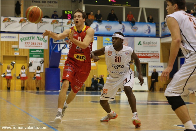 … ale zkraje čtvrté čtvrtiny to vypadalo, že by mohl přijít děčínský obrat, který se pokusil nastartovat úvodními pěti body Peter Sedmák – snižoval na 61:67. I když hráči JIPu opět utekli na dvouciferný rozdíl, Sanders a spol. se nevzdávali a dřeli dál, za což jim bylo odměnou snížení na 70:73, o které se postaral po zisku míče trefou zpod koše Patrick Pope – to právě běžela 37. minuta… Dvě minuty a jedenadvacet sekund před závěrečnou sirénou však prohnal síťkou trojku také Čarnecký a odtáhl hosty opět na šest bodů – 70:76; šéf pardubické lavičky Jan Slowiak viděl právě tento okamžik jako zlomový pro další vývoj. I když se následně opět zpoza perimetru trefil Patrick, hosté díky Žabasovi s Čarneckým utekli na šest bodů a závěr klání již zkušeně dohráli – a nakonec si odváží z ČEZ Sportcentra výhru 82:75.