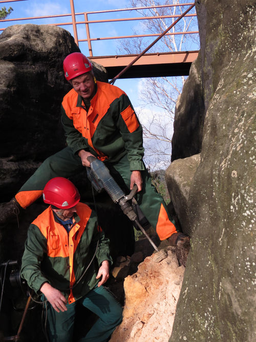 Vysoká Lípa, 8. 2. 2013 – Pracovníci skalní čety Správy Národního parku České Švýcarsko v minulém týdnu odstranili nestabilní balvan nad přístupovou cestou na skalní hrádek Šaunštejn. Pískovcový balvan o hmotnosti zhruba 500 kilogramů byl kvůli vysokému stupni zvětralosti pro návštěvníky nebezpečný. Skalní četa kámen rozebrala za použití bouracího kladiva na drobné kusy, které z cesty posléze odklidila.