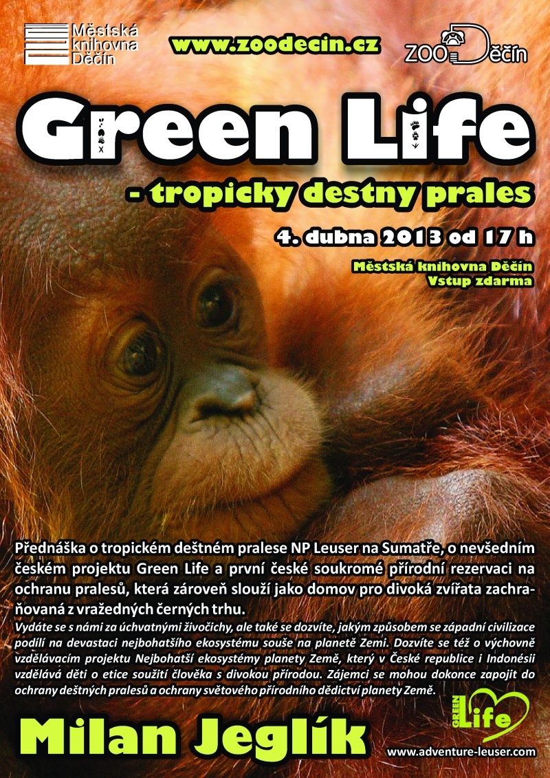 Dne 4.4. od 17:00 proběhne v přednáškovém sále Městské knihovny Děčín přednáška s názvem „Green Life“. Přednášet bude Milan Jeglík.