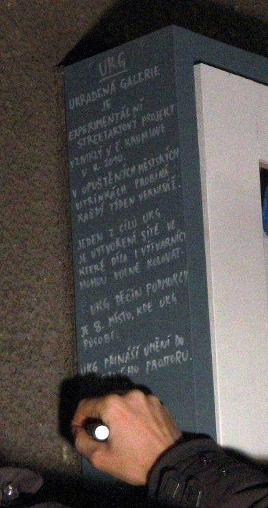 Ve čtvrtek 21. 3. 2013 byl slavnostně zahájen nový street artový projekt v Děčíně – Podmoklech s názvem Ukradená galerie. Nabízí všem, kdo tvoří a má chuť se o svá díla podělit s ostatními, prostor pro svou prezentaci ve vitríně, kterou v Děčíně najdete na rohu ulic Zbrojnická a Tržní. ...mapa