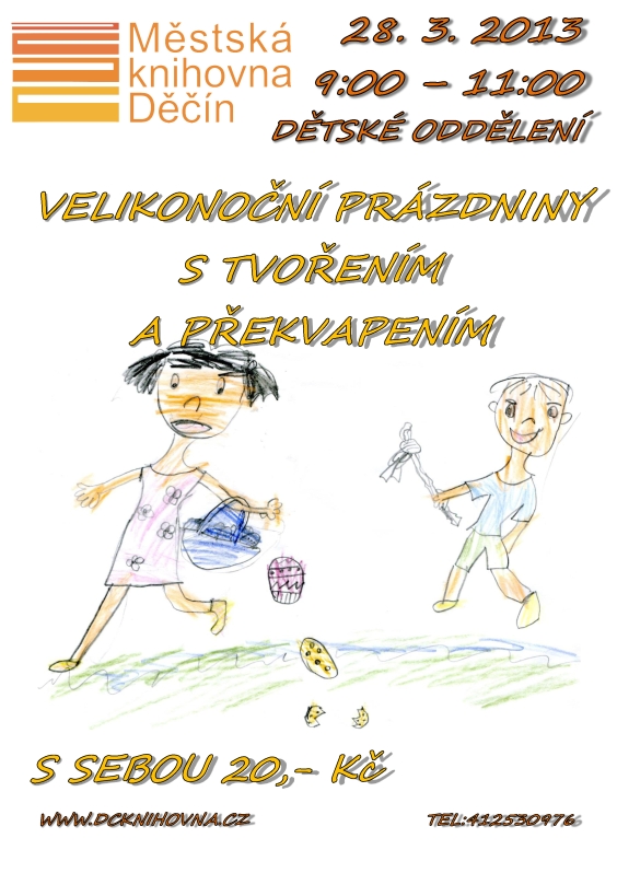 Rubriky Dětem Velikonoční prázdniny s tvořením a překvapením Autor příspěvku Autor: aleso Datum příspěvku 18/03/2013 Sdílejte:Share Share on Facebook (Opens in new window) Facebook Štítky knihovna ← Díky skvěle zvládnuté druhé půli letos poprvé vítězíme nad Ostravou! → Ukončení veřejné výtvarné soutěže o podobu náhrobku/pomníku měšťanů z města na Mariánské louce