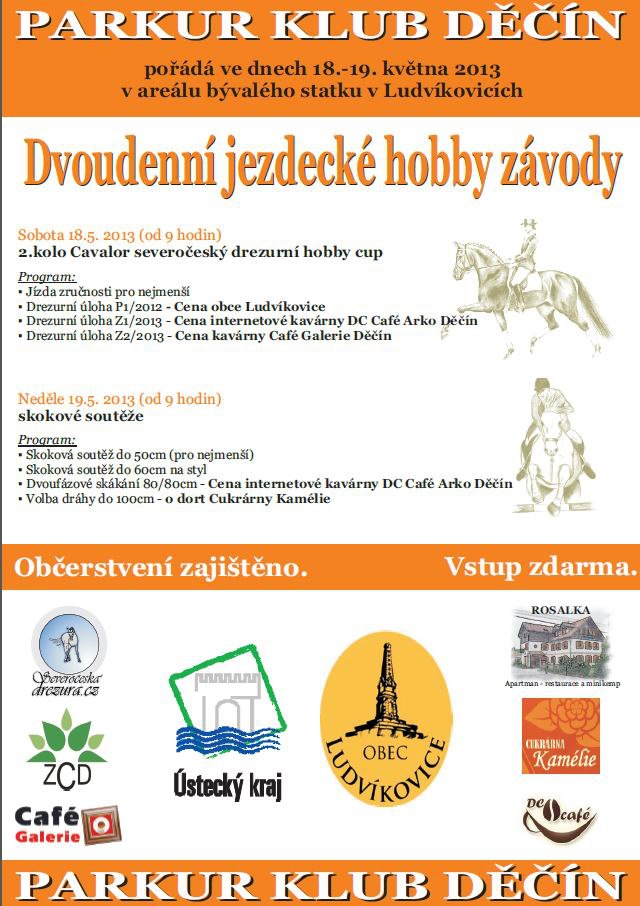 Parkur klub Děčín o.s. se sídlem v Ludvíkovicích (areál bývalého statku), pořádá ve dnech 18-19.5.2013 jezdecké hobby závody.