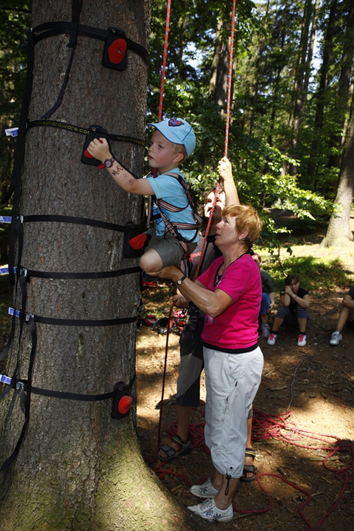 České Švýcarsko, 29. 7. 2013 – V sobotu 27. června oslavili horolezci[1] spolu se Správou Národního parku České Švýcarsko 125. výročí prvního sportovního výstupu na pískovcovou věž na území Čech. V areálu skalního hrádku Šaunštejn připravili pestrý program pro veřejnost. Návštěvníci akce si mohli prohlédnout výstavu o historii pískovcového lezení, doplněnou o malou expozici vybavení, které měli předchůdci dnešních lezců k dispozici. Skalní četa národního parku názorně předváděla soudobé techniky lezení na pískovcové skály. Tyto techniky si návštěvníci mohli pod dohledem zkušených lezců ze skalní čety také sami prakticky vyzkoušet. Závěr akce patřil kultuře z dílny libereckého Divadla Na cestě, které potěšilo děti i dospělé pohádkou O Lesněnce.