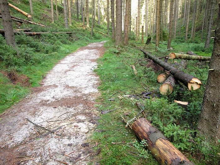 České Švýcarsko, 10. 9. 2013 – Správa národního parku České Švýcarsko v tomto týdnu dokončila zásah k zajištění bezpečného průchodu po značených turistických trasách[1]. Zásah spočíval v pokácení 274 nebezpečných stromů v jejich bezprostřední blízkosti. Převážně se jednalo o smrkové souše nakloněné nad cestu nebo o stromy v pokročilém stádiu hniloby kmene. Kmeny pokácených stromů byly ponechány na místě k zetlení.