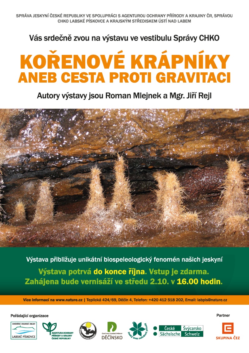 Správa CHKO Labské pískovce zve na výstavu Romana Mlejnka a Mgr. Jiřího Rejla „Kořenové krápníky aneb cesta proti gravitaci“. Výstava přibližuje unikátní biospeleologický fenomén našich jeskyní.