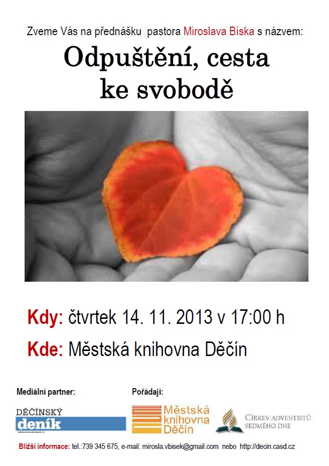 Rubriky Zprávy Odpuštění, cesta ke svobodě Autor příspěvku Autor: aleso Datum příspěvku 31/10/2013 poradatel: knihovna datum: 14.11.2013 Přednáška pastora Mmiroslava Biska Sdílejte:Share Share on Facebook (Opens in new window) Facebook Štítky knihovna ← Kráska a zvíře – láska na kolejích → Peru, pokladnice Jižní Ameriky