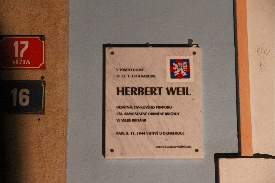 Dne 5. listopadu v 17 hodin byla slavnostně odhalena pamětní deska Herbertu Weilovi, desátníku tankového praporu Čsl. obrněné brigády ve Velké Británii, který padl v roce 1944 v bitvě u Dunkerque. Pamětní deska byla odhalena u příležitosti 69. výročí od jeho smrti na jeho rodném domě v Křížové ulici 16 v Děčíně I.