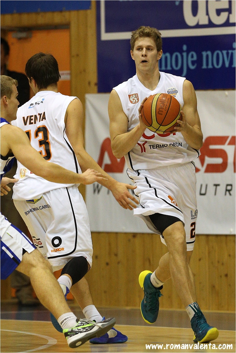 Body: Stria 13 (+ 7 asistencí), Bosák 13, Bartoň 12 (+ 6 doskoků a 5 asistencí; efektivita 21), Landa 12 (TH 6/6, z pole 3/3), Houška 10 (+ 5 doskoků; trojky 2/2), Bažant 10, Venta 6 (+ 5 asistencí), Jiříček 4 (+ 5 doskoků), Hendrych a Soukup po 2 – Cvetinovič 21 (+ 13 doskoků -> double-double – 4 útočné; 5 získaných faulů; validita 27), Šmíd 6 (5 F+), Bašta a Semerád po 6, Zachrla 4 (+ 6 doskoků), Marič a Satarič po 4, Honomichl, Nehoda a Šiška po 2; střelba 3 b.: 23/6 – 15/4; střelba 2 b.: 51/27 – 50/16; TH: 16/12 – 20/13; doskoky: 37:42 (útočné 6:11); chyby: 21:20; ztráty: 9:14; týmová efektivita: 101:56; nejlepší hráč utkání: Lukáš Bažant (Děčín); počet diváků: 980.