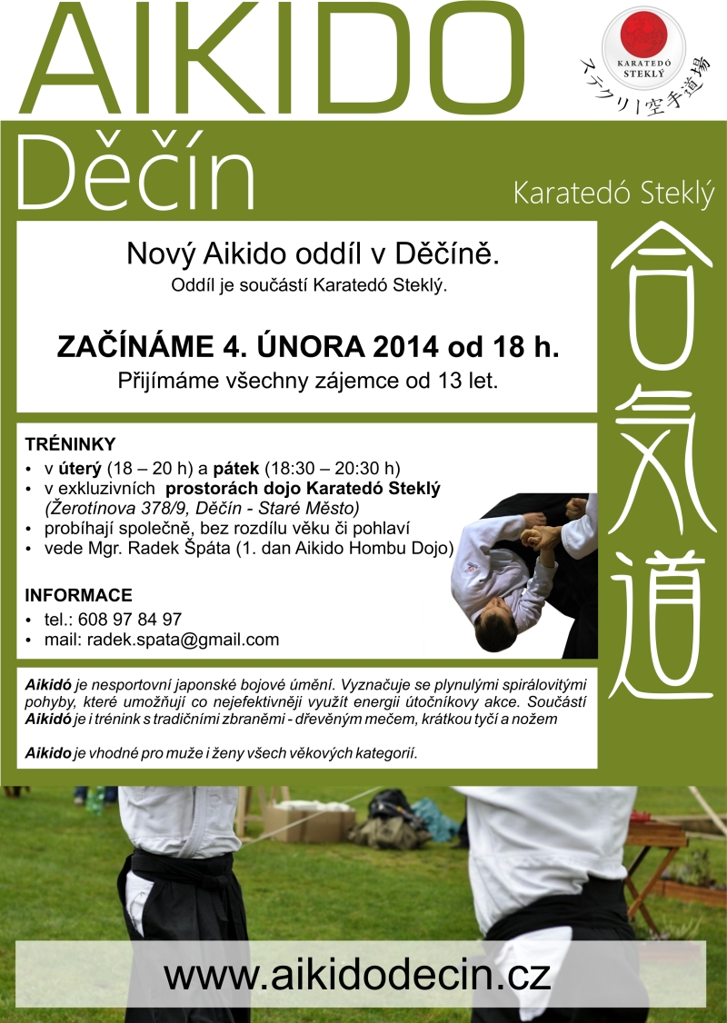 Rubriky Dětem Sport Zprávy Nový Aikido oddíl v Děčíně Autor příspěvku Autor: aleso Datum příspěvku 19/01/2014 Od února bude možné v klubu Karatedó Steklý navštěvovat hodiny Aikido. Podobný obsah:Děčín posiluje autobusové spoje, více jezdit budou i v nociTisková konference před startem NBLTři jednotky hasičů likvidovaly uniklé provozní…Sdílejte:Share Click to share on Facebook (Opens in new window) Facebook Štítky karate ← Zápas, ve kterém vlastně nebylo vítěze ani poraženého… → Děčín proměnil utkání s Klatovy v exhibici a zvítězil tak vysoko 12:2