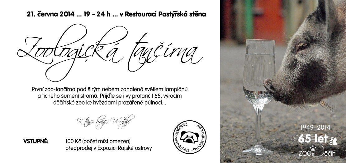 Závěr oslav bude patřit tzv. Zoologické tančírně. Půjde o taneční zábavu pod širým nebem v areálu restaurace na Pastýřské stěně. K poslechu i tanci zahraje hudební skupina U-Style. V přestávkách čeká účastníky tančírny překvapení. Počet míst je omezen. Vstupenky je možné zakoupit v předprodeji v Expozici Rajské ostrovy. „Tančírna bude zahájena v 19 hodin a my doufáme, že se společně protančíme 65. výročím až ke hvězdami prozářené půlnoci,“ uzavřela Alena Houšková.