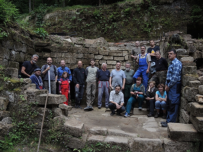České Švýcarsko, 25. 6. 2014 – V sobotu 21. června 2014 proběhla druhá letošní brigáda na Dolském mlýně, které se zúčastnilo 19 dobrovolníků. Z torza hotelu bylo vyvezeno 5 t suti, pokročily práce na konzervaci stěn bývalé stáje a vyklízení napadané zeminy v prostoru za její zadní fasádou. Z areálu byly odvezeny i tři pytle odpadků. Brigádníkům velký dík za jejich čas a odvedenou práci.