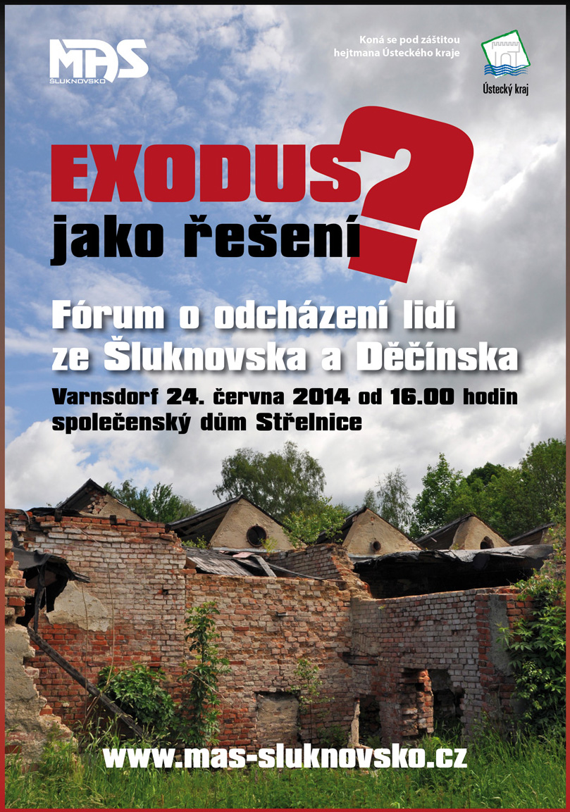 O tom, že problém odcházení lidí ze Děčínska má zásadní význam, svědčí i to, že fórum „Exodus jako řešení?“ získalo záštitu hejtmana Ústeckého kraje. Další informace najdete na www.mas-sluknovsko.cz.