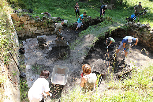 České Švýcarsko, 24. 7. 2014 – V sobotu, 19. července 2014, pomáhalo jedenáct dobrovolníků s odhalováním zbytků zdiva bývalé Křinické hospody v zaniklé osadě Zadní Jetřichovice. Slunečné počasí a vysoké teploty sice práci na otevřeném prostranství bez stínu příliš nepřejí, ale na elánu a dobré náladě lidí to nebylo znát a podařilo se zaplnit 5 t kontejner sutí. Pokud se stejně vydaří i brigáda 6. září, bude již na podzim zcela vyčištěn prostor někdejší hostinské stáje. Všem obětavým brigádníkům velký dík!