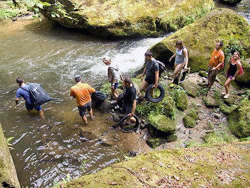 V sobotu, 2. 8. 2014, se sešlo celkem 18 dobrovolníků z řad příznivců geocachingu, aby pokračovali v čištění říčky Kamenice v národním parku České Švýcarsko od naplavených odpadů. Z těžko přístupných míst vynesli celkem 8 pytlů odpadu a 5 pneumatik. Správa národního parku všem účastníkům děkuje za pomoc!