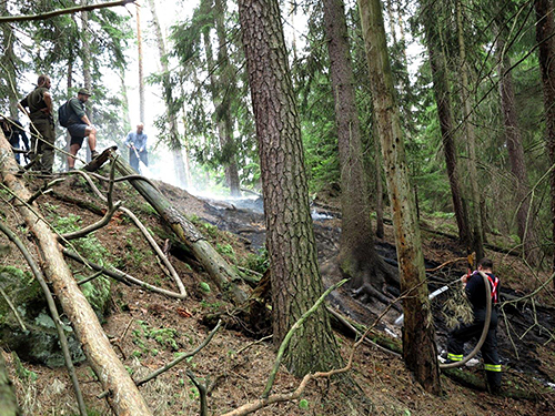 České Švýcarsko, 4. 8. 2014 – Následkem bouřek, které v uplynulých dnech zasáhly také národní park České Švýcarsko, vznikly v lesích národního parku dva malé lesní požáry. V posledním červencovém týdnu hořel na ploše zhruba 50 čtverečních metrů les u Srbské Kamenice, prvního srpnového dne hasiči uhasili oheň na ploše asi 30 čtverečních metrů u památníku Pochodu smrti v Zadní Doubici. Zásahy od blesku, které se však obešly bez následného požáru, jsou známé také z dalších míst v národním parku. Správa parku v souvislosti s bouřkami nabádá k opatrnosti také návštěvníky.