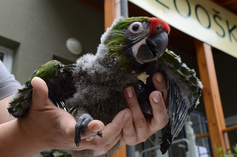 Ptáče, kam se podíváš. Přesně tak to nyní vypadá v děčínské zoologické zahradě. Opeřenci se zde líhnou o sto šest. Bezesporu nejzajímavějším odchovancem je mládě velkého papouška ara vojenského. „Mají ho v péči ošetřovatelé, protože samice nevěděla, jak se o něj správně postarat. Znamená to pro ně téměř čtyřiadvacetihodinovou pohotovost, krmení po třech hodinách. Mládě přišlo na svět 11. června. Po měsíci a půl v péči ošetřovatelů se má čile k světu, má obrovskou chuť k jídlu, pomalu mu začíná růst typické zelené peří,“ vysvětlila mluvčí zoo Alena Houšková. Pohlaví ptáčete prozatím není známo, odhalí ho až testy DNA, které bude muset papoušek podstoupit.
