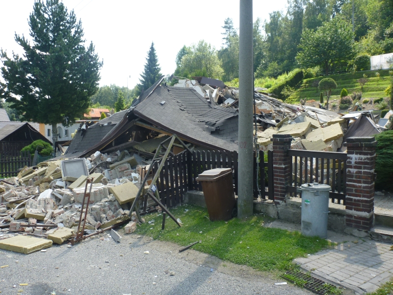Rodina Fialova ze zničeného domu v Jílovém na Děčínsku přebývá na ubytovně. Dům jim před dvěma týdny srovnala se zemí exploze plynu, výbuch stavbu kompletně zničil. Fialovi ale odklízejí sutiny a chystají se na stavbu nového domu.