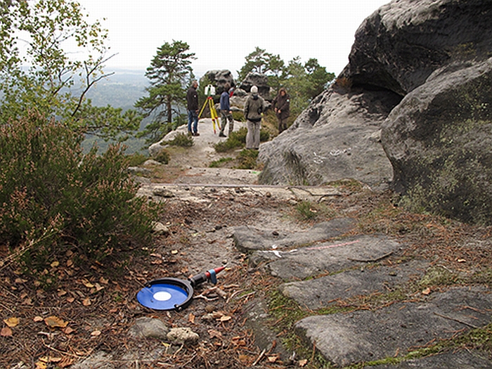 České Švýcarsko, 25. 9. 2014 – Pomocí georadaru prozkoumali geologové těleso Pravčické brány. Georadar je zařízení, které vysílá elektromagnetické vlny do skalního masívu a přijímá vlny odražené. Pomáhá tedy odhalit anomálie ve zkoumaných tělesech, například pukliny. Georadarové průzkumy jsou s odstupem několika let periodicky opakovány. Získané poznatky slouží mimo jiné k odhadům dalšího vývoje největší evropské pískovcové brány. Naposledy obdobné měření proběhlo v roce 2008. Letos byl průzkum rozšířen o další části brány, které v minulosti ještě zkoumány nebyly.