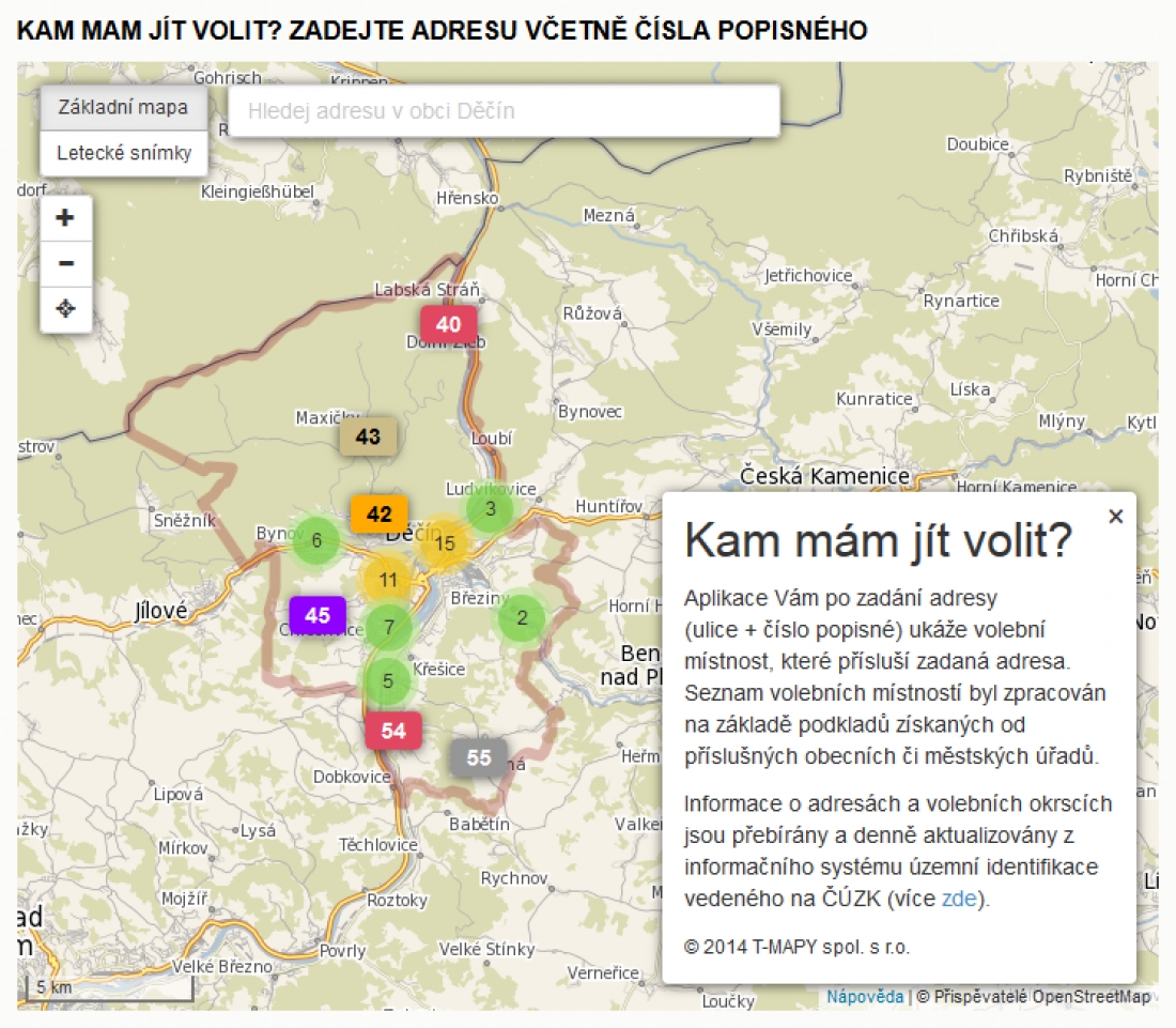 Na podnět Magistrátu města Děčín vyvinula společnost T – mapy s. r. o. aplikaci, s jejíž pomocí zjistíte, do jakého volebního okrsku patříte. Vyzkoušet si jí můžete kdykoliv na adrese, kterou najdete v článku.