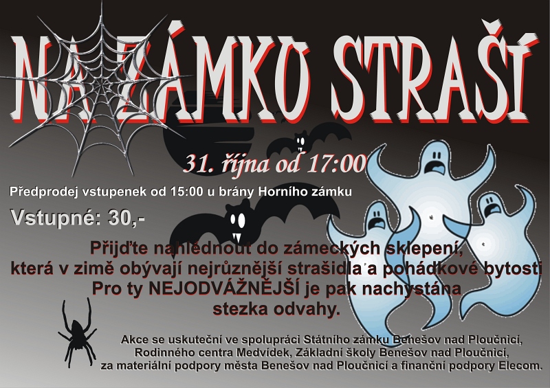 Benešov nad Ploučnicí – Definitivní tečku letošní sezóně udělá na Státním zámku v Benešově nad Ploučnicí akce „Na zámku straší“. Tato akce se stává tradicí. „Před lety mě oslovila Zdena Černá se svým pěveckým sborem Klubíčko, že by ráda na zámku uspořádala nějakou strašidelnou akci. Nebyl jsem proti. Zdeně Černé tak patří velké díky za nápad i několikaletou organizaci. V letošním roce se k nám bohužel poprvé nepřipojí,“ uvedl kastelán benešovského zámku Zdeněk Henig.