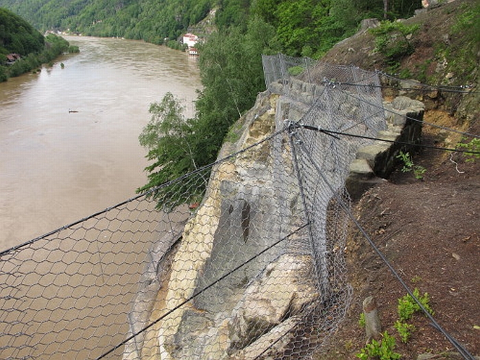 Projekt Zabezpečení nestabilních skalních svahů nad obcí Hřensko s využitím vysokozátěžových ochranných bariér je financován ze státního rozpočtu a operačního programu Životní prostředí. Dokončení stavby je předpokádáno v červenci 2015. Bariéry pak budou obec Hřensko chránit před řítícími se skalními bloky, přičemž nejsilnější bariéra udrží blok o objemu až 5 m3, což odpovídá hmotnosti zhruba 10 tun. Realizace projektu probíhá v části národního parku, která je z hlediska péče o území vymezena jako trvale zásahové území, a to z důvodu ochrany zdraví a majetku osob.