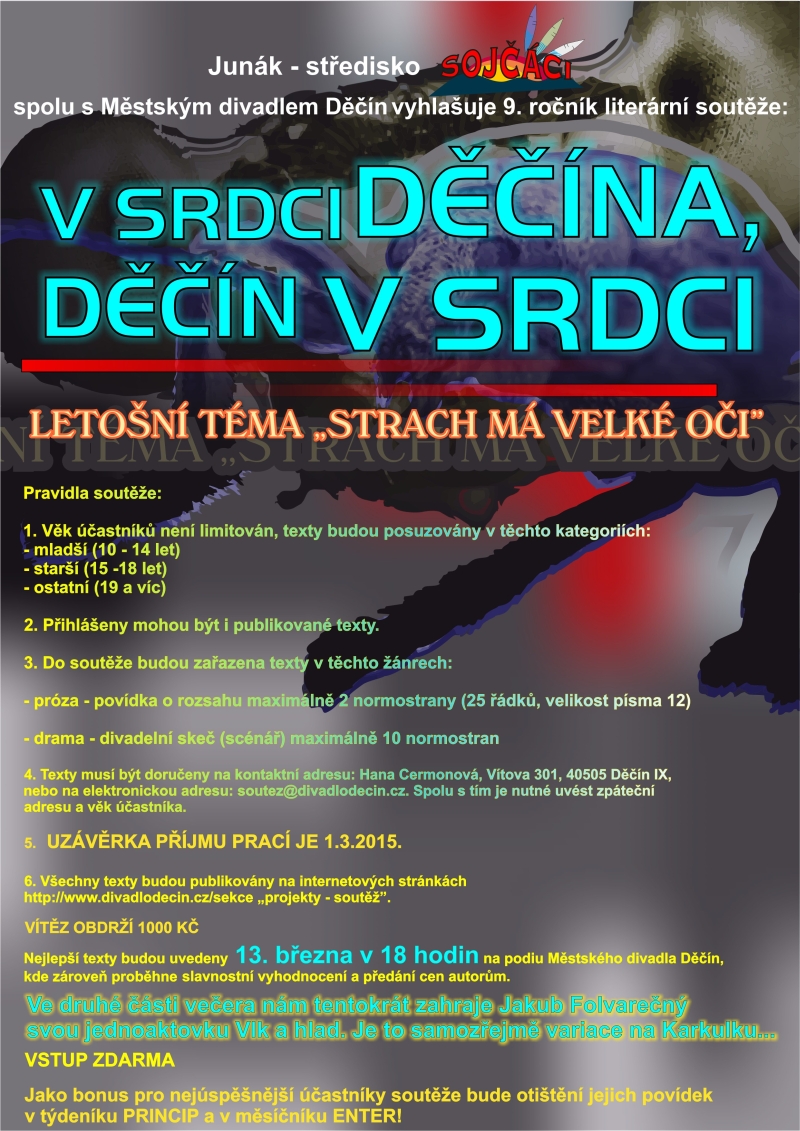 Junák – středisko Sojčáci spolu s Městským divadlem Děčín vyhlašuje 9. ročník literární soutěže „V SRDCI DĚČÍNA, DĚČÍN V SRDCI“.