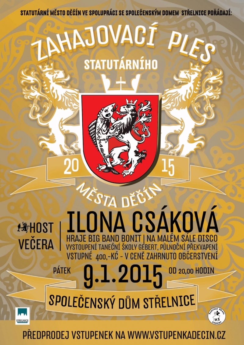 Tradiční Zahajovací ples města se těší velké oblibě. Pokud chcete zahájit taneční sezónu s hvězdou večera Ilonou Csákovou neváhejte a pořiďte si lístky již nyní. Na ples, který se koná 9. ledna, zbývá už jen pár volných míst.